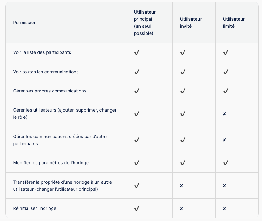Permissions selon les types d’utilisateursActualisé 4 months ago